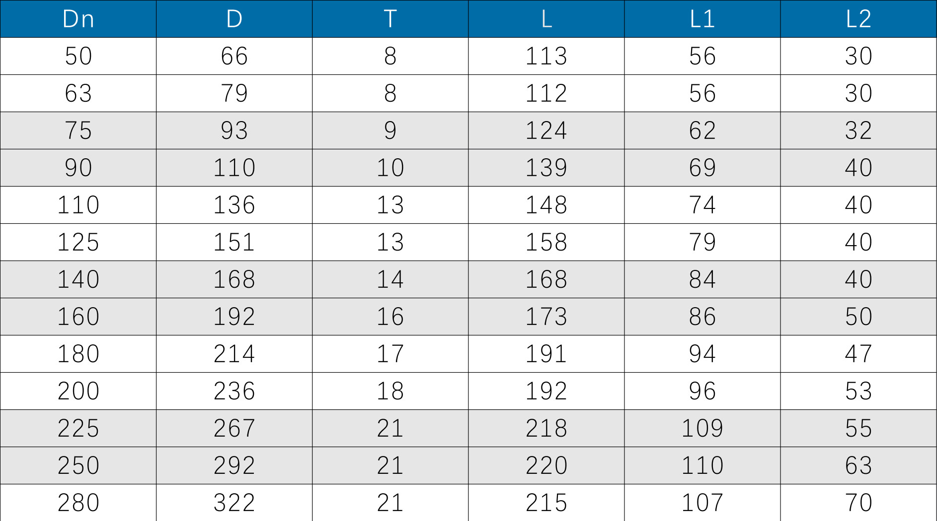 · Select size according to pipe outside diameter (DN).